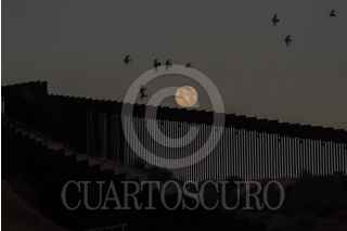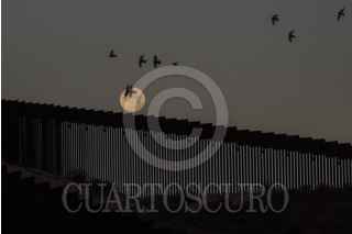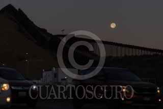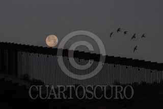 TIJUANA, BAJA CALIFORNIA, 14ENERO2025.- Así lució la luna llena esta mañana, ocultándose detrás del muro fronterizo a la altura de Playas de Tijuana.. OMAR MARTÍNEZ/ CUARTOSCURO.COM