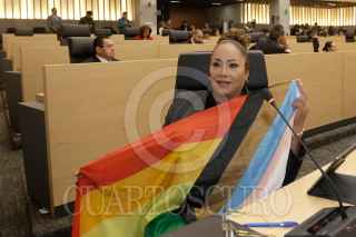 PUEBLA, PUEBLA, 15ENERO2024.- Gabriela Chumacero rindió protesta como diputada local de la LXII legislatura del Congreso del Estado, convirtiéndose en la primera legisladora transexual en la entidad. FOTO: MIREYA NOVO/ CUARTOSCURO.COM