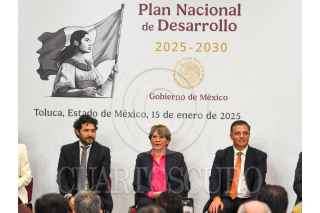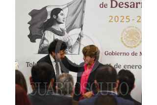 TOLUCA, ESTADO DE MÉXICO, 15ENERO2025.- Delfina Gómez Álvarez, Gobernadora del Estado de México durante las Mesas de Diálogo del Foro “Economía Moral y Trabajo” para la construcción del Plan Nacional de Desarrollo 2025-2030. FOTO: CRISANTA ESPINOSA AGUILAR /CUARTOSCURO.COM