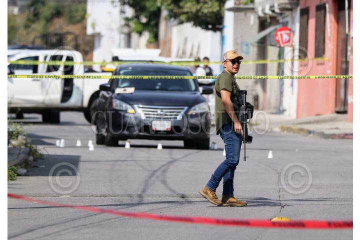 JIUTEPEC, MORELOS, 16ENERO2025.- Asesinan a balazos a tres mujeres en la calle Nardos de la colonia El Edén. Dos de ellas policías del municipio de Cuernavaca, una comandante y su escolta y una menor de edad, hija de una de las policías. El ataque ocurrió pasadas las 10:40 de la mañana cuando las mujeres circulaban en la calle referida a bordo de un vehículo color negro cuando fueron atacadas por los ocupantes de dos camionetas, en el sitio peritos de la Fiscalía de Justicia de Morelos embalaron 17 casquillos calibre 9 milímetros. Los homicidas dejaron sobre el cofre del auto un mensaje escrito en una cartulina. FOTO: MARGARITO PÉREZ RETANA/CUARTOSCURO.COM