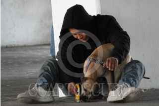 CIUDAD DE MÉXICO, 16ENERO2025.- Un perrito se alimenta de croquetas que le proporciona su dueña en la Glorieta de Insurgentes. FOTO: GRACIELA LÓPEZ/CUARTOSCURO.COM