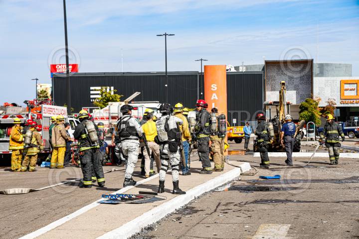 CULIACÁN, SINALOA, 16ENERO2025.-El coordinador de Protección Civil de Sinaloa, Roy Navarrete Cuevas, informó sobre un incendio en una conocida plaza comercial, probablemente causado por trabajos de soldadura, que dejó una persona lesionada con quemaduras y dos más atendidas por shock nervioso. Aún no se ha confirmado si los afectados eran empleados del lugar o personal externo, y las investigaciones determinarán oficialmente las causas del incendio. Navarrete indicó que el fuego fue controlado en un 90%, aunque lamentablemente las pérdidas en el área afectada fueron totales. FOTO: JOSÉ BETANZOS/CUARTOSCURO.COM