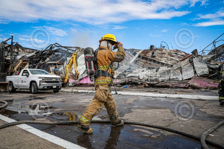 CULIACÁN, SINALOA, 16ENERO2025.-El coordinador de Protección Civil de Sinaloa, Roy Navarrete Cuevas, informó sobre un incendio en una conocida plaza comercial, probablemente causado por trabajos de soldadura, que dejó una persona lesionada con quemaduras y dos más atendidas por shock nervioso. Aún no se ha confirmado si los afectados eran empleados del lugar o personal externo, y las investigaciones determinarán oficialmente las causas del incendio. Navarrete indicó que el fuego fue controlado en un 90%, aunque lamentablemente las pérdidas en el área afectada fueron totales. FOTO: JOSÉ BETANZOS/CUARTOSCURO.COM