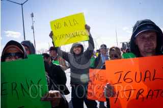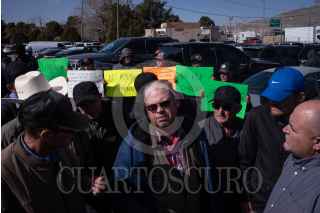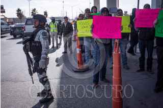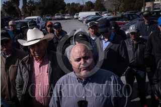 CIUDAD JUÁREZ, CHIHUAHUA, 17ENERO2025.- Julián LeBarón, junto a un grupo de menonitas, se manifestaron en las inmediaciones Puente Internacional Córdova de las Américas por la detención de Johan Nikell por parte de la Fiscalía General de la República (FGR) al acusarlo de presunta extracción ilegal de gasolina. FOTO: PEDRO ANZA /CUARTOSCURO.COM