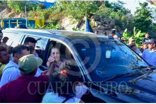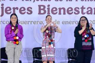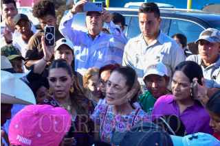 COSTA CHICA, GUERRERO, 17ENERO2025.- La presidenta México Claudia Sheinbaum Pardo realizó un recorrido por la región de la Costa Chica del Estado de Guerrero, en el municipio de San Marcos en un acto público entregó tarjetas de Bienestar a Mujeres, donde habitantes de ese municipio se manifestaron con pancartas durante el evento para denunciar que no fueron censados para recibir apoyos por ser afectados por el huracán John. Habitantes de Copala también afectados por el huracán John fueron atendidos por la presidenta mientras bloqueaban la carretera para exigir apoyos, el bloqueo se retiro para que la presidenta pasara después de que se comprometiera a que serían atendiendos por la secretaria de Bienestar. FOTO: CARLOS CARBAJAL/CUARTOSCURO.COM