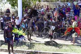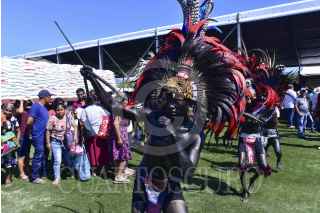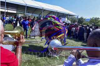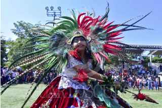 SAN LUIS ACATLÁN, ,GUERRERO, 18ENERO2025. Danzantes y bandas de música de viento dieron la bienvenida a la presidenta de México Claudia Sheinbaum Pardo, con las tradicionales danzas de El Toro de Petate y Los Apaches, en el municipio de San Luis Acatlan, danzas tradicionales del estado de Guerrero. FOTO: CARLOS CARBAJAL.