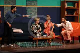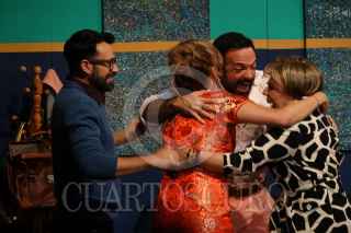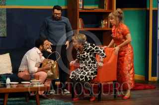 CIUDAD DE MÉXICO, 18ENERO2025.- El elenco de “No al Dinero”: Antonio Alcántara, Pilar del Valle , Mariana Gajá y Pablo Perroni durante la función a medios de dicha puesta en escena en el Teatro Milán en la colonia Juárez. FOTO: GALO CAÑAS/CUARTOSCURO.COM