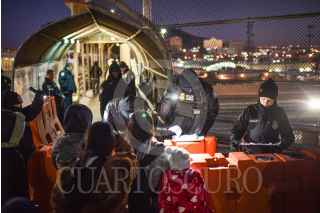 CIUDAD JUÁREZ, CHIHUAHUA, 19ENERO2025.- Un día antes de la toma de posesión de Donald Trump como presidente de los Estados Unidos, Migrantes que obtuvieron cita confirmada por CBP One (permiso humanitario que les permita el ingreso legal a Estados Unidos), bajo un clima gélido, ingresan por el Puente Internacional Paso del Norte. FOTO: PEDRO ANZA /CUARTOSCURO.COM