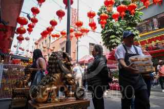 CIUDAD DE MÉXICO, 19ENERO2025.- Los comercios del Barrio Chino, ubicado en la calle de Dolores en el Centro, se encuentra listo para celebrar el Año Nuevo Chino, que este año festejarán a la serpiente de madera. Los puestos de dumplings, souvenirs y comida se encuentran al cien para recibir a los miles de visitantes que acuden a este festejo, que también incluye danza y música. FOTO: MOISÉS PABLO/CUARTOSCURO.COM