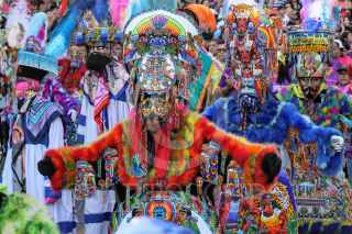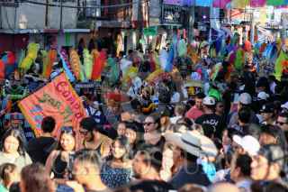 JIUTEPEC, MORELOS, 19ENERO2025.- Encuentro de comparsas de chinelos que marca el inicio del Carnaval 2025 en la entidad. Decenas de agrupaciones de ejecutantes de esta danza centenaria se dieron cita para danzar en las calles del centro de este municipio. A pesar de que el gobierno estatal recomendó regular la venta y consumo de alcohol en la vía pública, esto no se observa en sus calles donde abundan los negocios de micheladas y cócteles. FOTO: MARGARITO PÉREZ RETANA/CUARTOSCURO.COM