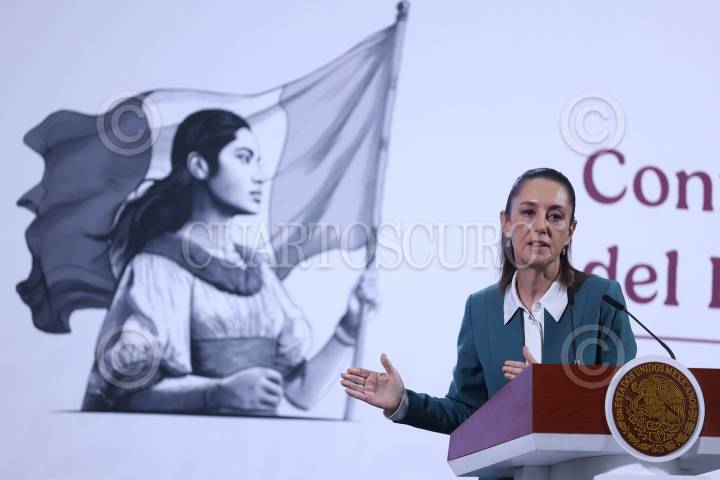 CIUDAD DE MÉXICO, 20ENERO2025.- Claudia Sheinbaum, Presidenta de México, seguro que los mexicanos radicados en Estados Unidos seran atendidos en caso de que se han deportados, esto ante la entrada de la era de Donald Trump, quién hoy asume la presidencia de Estados Unidos, y ha dado conocer que implementará planes agresivos para acabar lo migración irregular en su país, esto durante la mañanera del pueblo. FOTO: MOISÉS PABLO/CUARTOSCURO.COM