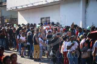 TAPACHULA, CHIAPAS, 20ENERO2025.- La oficina de la Comisión Mexicana Ayuda Refugiados (COMAR) colapso por migrantes, en su mayoría de Haití, quieres colmaron está sede buscando un documento que les permita continuar con su viaje hacia Estados Unidos. Un trabajador de la oficina salió hablar con un megáfono para avisar que por el momento no tiene citas de las entrevista y que deben de continuar con su cita semanal, esto ante la toma de protesta de Donald Trump como Presidente de Estados Unidos, quién ha dado a conocer que aplicará una política de deportaciones masivas a los migrantes irregulares de su país. FOTO: DAMIÁN SÁNCHEZ/CUARTOSCURO.COM