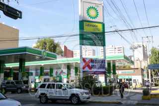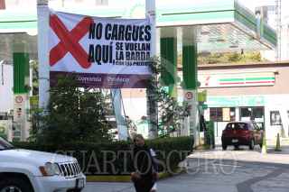 CIUDAD DE MÉXICO, 20ENERO2025.- Profeco colocó una manta con la leyenda "No cargues aquí" en una gasolinera ubicada en la colonia Del Valle, esto por no respetar los precios promedios en la venta de las gasolinas. FOTO: MOISÉS PABLO/CUARTOSCURO.COM