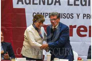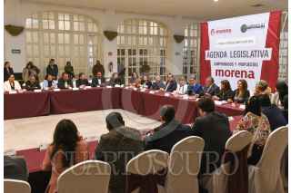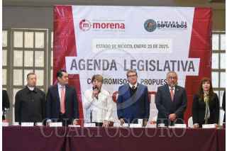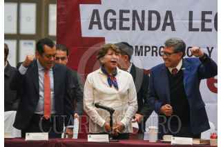 TOLUCA, ESTADO DE MÉXICO, 20ENERO2025.- Delfina Gómez Álvarez, Gobernadora del Estado de México inauguró los trabajos de la Plenaria de los Diputados y Diputadas Federales de MORENA del Edoméx y Michoacán que se celebró en la capital mexiquense, siendo la primera reunión de trabajo de 8 que se realizarán en diferentes estados. Los trabajos de los legisladores estuvieron encabezados por Ricardo Monreal Ávila, Coordinador del Grupo Parlamentario de MORENA en la Cámara de Diputados Federales, Sergio Gutiérrez Luna, Presidente de la Mesa Directiva de la LXVI Legislatura federal. FOTO: CRISANTA ESPINOSA AGUILAR /CUARTOSCURO.COM