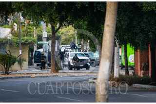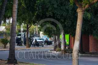 CULIACÁN, SINALOA 21ENERO2025.- En la madrugada del martes, tras una serie de balaceras en el sector Las Quintas y colonias aledañas en Culiacán, personal de la Secretaría de la Defensa Nacional aseguró un inmueble donde detuvieron a al menos dos personas, encontraron armas, municiones y una habitación habilitada como centro de monitoreo de videovigilancia, similar al C4 del Municipio y del Estado. Según testigos, los detenidos fueron trasladados en vehículos oficiales blindados y lo incautado permanece en el lugar a la espera del Ministerio Público Federal. Las balaceras, que iniciaron alrededor de las 5:30 de la madrugada, movilizaron a agentes de diversas corporaciones y de la Defensa Nacional a zonas como Las Quintas, Miguel Hidalgo, La Campiña, Villa Satélite, Guadalupe Victoria, Villa del Real y El Barrio. En el bulevar El Dorado, se localizó la vivienda con pantallas conectadas a cámaras de videovigilancia en distintos sectores de la ciudad. Se presume que este centro de monitoreo replicaba el modus operandi de grupos del crimen organizado en la Ciudad de México. Autoridades aún no han dado a conocer detalles oficiales sobre el operativo y los objetos incautados. FOTO: JOSÉ BETANZOS ZÁRATE/CUARTOSCURO.COM