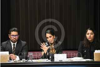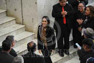XALAPA, VERACRUZ, 21ENERO2025.- Entre reclamos de colectivos de desaparecidos, compareció la fiscal general de Veracruz, Verónica Hernández Giadáns, ante el Congreso local. Al concluir se tomó fotos con los trabajadores de la fiscalía que la acompañaron. FOTO: YERANIA ROLÓN/CUARTOSCURO.COM