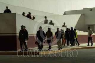 TIJUANA BAJA CALIFORNIA 21ENERO2025.- Decenas de migrantes fueron deportados esta noche por el puerto de entrada El Chaparral. A las 7 de la noche de este martes 21 de enero, alrededor de 100 migrantes fueron deportados de los Estados Unidos, por el cruce peatonal del Chaparral de la frontera de Tijuana. Un grupo de migrantes al salir manifestaron que fueron sorprendidos por autoridades de migración cuando realizaban sus labores en los campos de Denver, Colorado. Uno de los repatriados señaló que el presidente Donald Trump, le está haciendo mucho daño a personas que trabajan dentro del país norte americano. “Que realmente le está haciendo mucho daño a personas trabajadoras como a nosotros”, señaló un de los migrantes antes de subir a una unidad del Instituto de Migración de México. Los repatriados salieron en grupos de 15 a 20 personas y fueron subiendo a vagonetas blancas del Instituto de Migración. Se desconoce a qué punto de la ciudad los llevaron. FOTO: OMAR MARTÍNEZ/CUARTOSCURO.COM