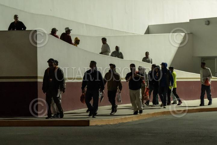 TIJUANA BAJA CALIFORNIA 21ENERO2025.- Decenas de migrantes fueron deportados esta noche por el puerto de entrada El Chaparral. A las 7 de la noche de este martes 21 de enero, alrededor de 100 migrantes fueron deportados de los Estados Unidos, por el cruce peatonal del Chaparral de la frontera de Tijuana. Un grupo de migrantes al salir manifestaron que fueron sorprendidos por autoridades de migración cuando realizaban sus labores en los campos de Denver, Colorado. Uno de los repatriados señaló que el presidente Donald Trump, le está haciendo mucho daño a personas que trabajan dentro del país norte americano. “Que realmente le está haciendo mucho daño a personas trabajadoras como a nosotros”, señaló un de los migrantes antes de subir a una unidad del Instituto de Migración de México. Los repatriados salieron en grupos de 15 a 20 personas y fueron subiendo a vagonetas blancas del Instituto de Migración. Se desconoce a qué punto de la ciudad los llevaron. . FOTO: OMAR MARTÍNEZ/CUARTOSCURO.COM