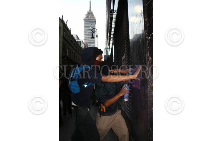 MÉXICO,D,F.,02OCTUBRE2007.- Punk´scon banderas de anarquismo, se plantan en la plancha del zócalo. FOTO:SASHENKA GUTIERREZ/CUARTOSCURO.COM