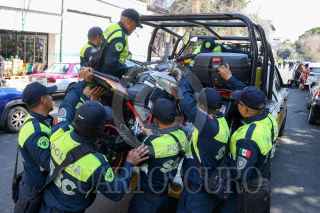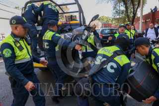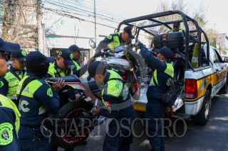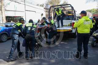 CIUDAD DE MÉXICO, 22ENERO2025.- Elementos de la Secretaría de Seguridad Pública (SSC) realizaron un operativo para despejar vialidades. Retiro al menos unas veinte motocicletas que se encontraban estacionadas en doble fila en las inmediaciones de la Secretaría de Finanzas de la Ciudad de México, ubicadas en la colonia Doctores. Las unidades fueron remitidas a un corralón por infringir la ley, algunos dueños se quejaron de esta medida. FOTO: MOISÉS PABLO/CUARTOSCURO.COM