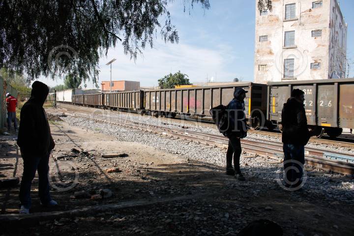 SAN LUIS POTOSÍ, SAN LUIS POTOSÍ, 22ENERO2025.- A la orilla de las vías ferroviarias migrantes de Honduras, El Salvador, Panamá y Nicaragua esperan a que llegue el tren que va a la frontera de Estados Unidos con la esperanza de poder llegar a su destino y lograr el anhelado sueño americano. esto a pesar de la amenazas del Presidente Donald Trump de endurecer las deportaciones para frenar la migración irregular. El día pasa y los trenes también sin detenerse ninguno todavía. Subir al tren en movimiento, dicen los migrantes es peligroso “porque el tren te jala al agarrarse de algún tubo del mismo y te puede revolcar. La velocidad con que pasa el ferrocarril hace imposible subirse, se tiene que parar. La espera continúa hasta que alguno se detenga. FOTO: MARCELO PALACIOS/CUARTOSCURO.COM