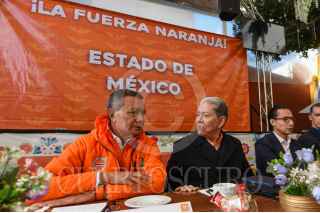 TOLUCA, ESTADO DE MÉXICO, 23ENERO2025.- Fernando Alberto García Cuevas, Coordinador Nacional de Trabajadores y Productores en Movimiento y Germán Aldana Juárez, Delegado Estatal en conferencia de prensa dieron la bienvenida a 80 líderes políticos de 29 municipios mexiquenses reforzando la presencia de Movimiento Ciudadano en la entidad Mexiquense. FOTO: CRISANTA ESPINOSA AGUILAR /CUARTOSCURO.COM