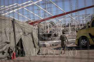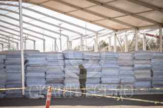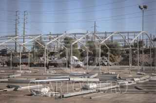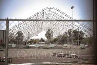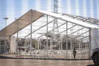 MEXICALI, BAJA CALIFORNIA 23ENERO2025.- Un par de albergues temporales se han habilitado sobre los terrenos el FEX y en el CREA, en Mexicali. El primero de estos para los migrantes, el segundo para los militares y soldados de la marina que lleguen a la ciudad, así como para ambulancias y demás equipo. Un total de seis carpas se levantará en el estacionamiento del FEX, con la posibilidad de aumentar el número de refugios dependiendo de la llegada de los migrantes. Según autoridades esto de presentarse el caso de las deposiciones masivas que se esperan desde la llegada de Donald Trump a la presidencia de Estados Unidos. FOTO: JACK ÁLVAREZ /CUARTOSCURO.COM
