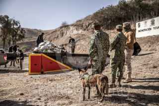 TIJUANA BAJA CALIFORNIA 23ENERO2025.- Elementos del Ejercito Mexicano observando el cumulo de narcóticos. En las instalaciones del Campo de Adiestramiento Regional Militar en Tijuana, se incineraron poco más de una tonelada de narcóticos durante este jueves 23 de enero. El decomiso se realizó en colaboración de las Fuerzas Armadas y de Seguridad Pública de la Mesa de Seguridad de Baja California en diciembre de 2024. Los narcóticos incinerados incluían 164 kilos de marihuana, 399 kilos de metanfetamina, 43 gramos de clorhidrato de cocaína, 271 gramos de morfina y 186 kilos de plantas de marihuana. El evento contó con la presencia de varias autoridades, incluyendo al General Javier Juvencio Fernández y al Secretario de Seguridad y Protección Ciudadana de Tijuana, Juan Manuel Sánchez Rosales. FOTO: LUIS BAUTISTA/CUARTOSCURO.COM