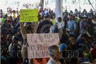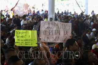 SAN PABLO VILLA DE MITLA, OAXACA, 24ENERO2025.- Durante el acto protocolario para inaugurar la carretera Mitla - Tehuantepec en San Pablo Villa de Mitla, en Oaxaca, madres y padres de niños con cáncer protestaron para exigir quimioterapias además de la reparación al 100?l hospital de la niñez oaxaqueña “Doctor Guillermo Zárate Mijangos”, afectado por las lluvias de 2024 y que a 6 meses no ha sigo reparado. El centro de salud atiende al menos a 200 pacientes infantiles de cáncer. FOTO: CAROLINA JIMÉNEZ/CUARTOSCURO.COM