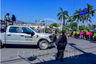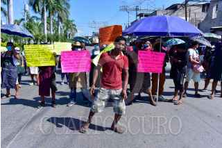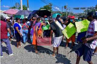 ACAPULCO, GUERRERO, 24ENERO2025.- Comerciantes de la Central de Abastos de Acapulco protestaron con bloqueos intermitentes en el boulevar Vicente Guerrero. Lo anterior, para denunciar los abusos de autoridad por parte de policías ministeriales y estatales que el día de ayer decomisaron maquinas tragamonedas y droga. FOTO: CARLOS CARBAJAL/CUARTOSCURO.COM