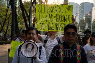 CIUDAD DE MÉXICO, 24ENERO2025.- Colectivos marcharon sobre Paseo de la Reforma con dirección al Senado de la República en defensa del maíz nativo, con motivo de los 10,000 años de la domesticación de este importante alimento en la dieta mexicana. Asimismo, llamaron a la autoridades a proteger los suelos, la biodiversidad y salvaguardar las semillas nativas evitando el uso de maíz transgénico. FOTO: GALO CAÑAS/CUARTOSCURO.COM