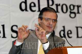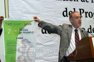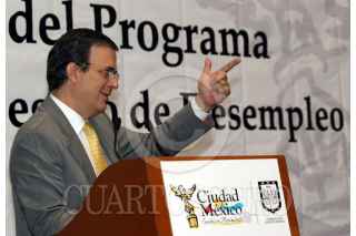 MEXICO,D.F03OCTUBRE2007.- Marcelo Ebrad Casaubón, jefe de de gobierno del Distrito Federal, Benito Mirón Lince, secretario del Trabajo y Fondo al Empleo y Martí Batres, secretario de Desarrollo Social al finalizar la presentación de la Convocatoria del Programa del Seguro de Desempleo. FOTO:ROCIO ORTIZ/CUARTOSCURO.COM