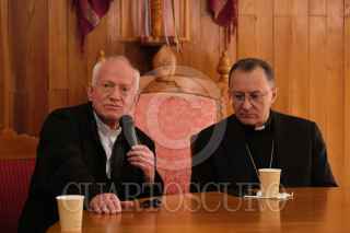 SAN CRISTÓBAL DE LAS CASAS, CHIAPAS, 25ENERO2025.- Al finalizar la peregrinación por la Paz en la entidad, el Monseñor Rodrigo Aguilar, representante del Vaticano en México, y Joseph Spiteri, abogado que lleva el caso del caso del padre Marcelo, ofrecieron conferencia para dar detalles sobre las investigaciones y también compartir su perspectiva sobre la violencia en aumento en el estado, los desplazamientos forzados y la entrada de la nueva policía del Gobernador Eduardo Ramirez. FOTO: ISABEL MATEOS /CUARTOSCURO.COM