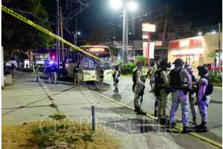 ACAPULCO, GUERRERO, 25ENERO2025.- Una mujer fue herida a balazos cuando viajaba en un camión en la avenida Costera en la zona turística de Caleta. La mujer fue atendida por parámedicos de la Cruz Roja y trasladada a un hospital, mientras el camión quedó resguardado por agentes de la Guardia Nacional y policías, para que se realizarán el peritaje de ley. FOTO: CARLOS CARBAJAL/CUARTOSCURO.COM