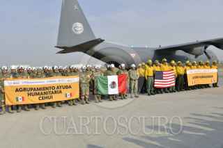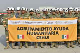 ZUMPANGO, ESTADO DE MÉXICO, 25ENERO2025.- Integrantes del Agrupamiento de Ayuda Humanitaria CEHUI de la Secretaria de la Defensa Nacional (SEDENA) regresaron a las inmediaciones de la Base Aérea de Santa Lucía luego de prestar servicios de apoyo para apagar los incendios en Los Ángeles, Estados Unidos. FOTO: SEDENA/CUARTOSCURO.COM