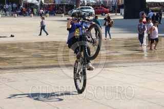 CIUDAD DE MÉXICO, 26ENERO2025.- Un joven muestra sus habilidades sobre su bicicleta haciendo un caballito en la explanada del Monumento a la Revolución. FOTO: MOISÉS PABLO/CUARTOSCURO.COM