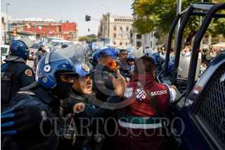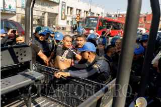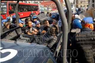 CIUDAD DE MÉXICO, 27ENERO2025.- Tras negarse a retirar sus puestos ambulantes, se registró un enfrentamiento entre comerciantes y policías capitalinos en la Alameda Central; dos personas fueron detenidas. FOTO: CUARTOSCURO.COM