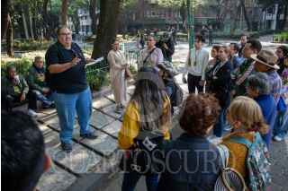 CIUDAD DE MÉXICO, 27ENERO2025.- El día de ayer decenas de personas –y algunas mascotas– caminaron por las calles de la colonia Roma como parte del “Ciclo Visitas Literarias”, organizado por la Coordinación Nacional de Literatura del Instituto Nacional de Bellas Artes y Literatura (INBAL), institución de la Secretaría de Cultura del Gobierno de México. El recorrido, titulado Las batallas en el desierto: JEP y la ciudad escrita, invitó a redescubrir el universo de la novela breve de José Emilio Pacheco. A las 09:30 h, bajo la sombra de los árboles en la Plaza Río de Janeiro, inició el paseo, encabezado por el escritor, maestro y literato Carlos Antonio de la Sierra, quien ha coordinado experiencias similares a lo largo de 15 años. El recorrido tuvo un significado especial, al conmemorar el onceavo aniversario luctuoso de José Emilio Pacheco (1939- 2014). De la Sierra subrayó el legado del autor: “La gran virtud de José Emilio Pacheco es que su obra sigue siendo vigente. Las batallas en el desierto no es solo un testimonio de una época, sino una reflexión universal sobre los seres humanos: sus pasiones, sus tribulaciones y sus desafíos". FOTO: SECRETARÍA DE CULTURA/CUARTOSCURO.COM
