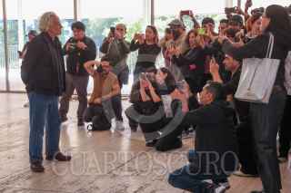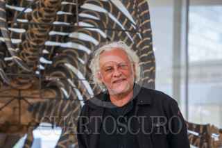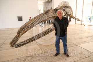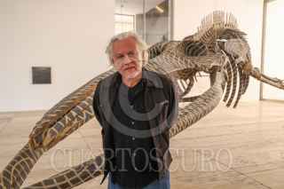 CIUDAD DE MÉXICO, 28ENERO2025.- El artista plástico Gabriel Orozco mostro su nueva exposición "Gabriel Orozco: Politécnico Nacional", que esta albergada en el Museo Jumex. La exhibición explora temas clave en la práctica de Orozco, mostrando cómo ha desafiado constantemente lo que el arte puede ser y cómo se hace, además muestra múltiples técnicas y estrategias del artista que ha desarrollado a lo largo de una extensa carrera que comenzó a principios de la década de 1990. También preciso que que no esta hecha en orden cronológico, sino que explora la fisura entre su obra y el mundo, cuestionando donde acaba una y empieza otra. En la imagen posa con su obra Dark Wave (2006). FOTO: MOISÉS PABLO/CUARTOSCURO.COM