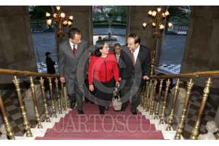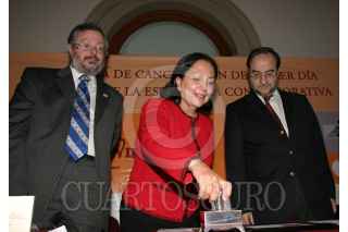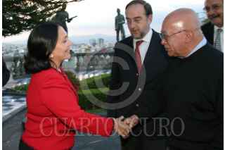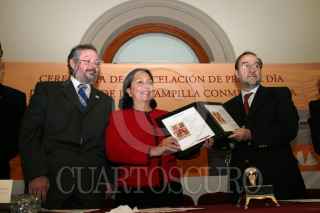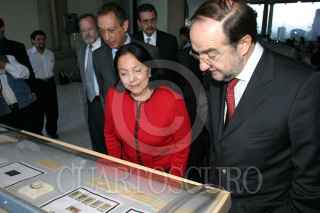MÉXICO, D.F., 03OCTUBRE2007.- Amalia García Medina, gobernadora de Zacatecas y Gilberto Aceves, poeta, durante la ceremonia de cancelación de primer día de emisión de la estampilla conmemorativa "Arte Sacro Virreinal" en el alcazar del Castillo de Chapultepec. FOTO: MOISÉS PABLO/CUARTOSCURO.COM