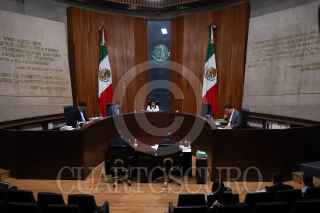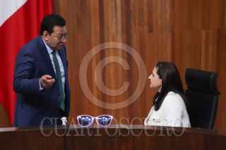 CIUDAD DE MÉXICO, 29ENERO2025.- El magistrado Felipe Fuentes dialoga con la magistrada presidenta, Mónica Soto, al finalizar la sesión del TEPJF. FOTO: DANIEL AUGUSTO/ CUARTOSCURO.COM