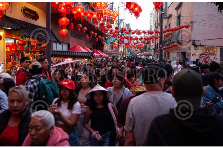 CIUDAD DE MÉXICO, 29ENERO2025.- Continúan las celebraciones por el año nuevo chino en su emblemático barrio en el Centro de la Ciudad. Cientos de personas acuden a la calle para comprar artículos y ver las danzas de dragones que visitan los locales. FOTO: ANDREA MURCIA /CUARTOSCURO.COM