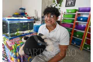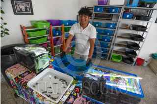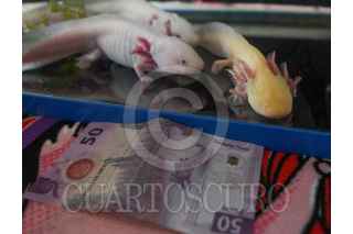 TOLUCA, ESTADO DE MÉXICO, 30ENERO2025.- El próximo 1 de febrero se celebra el Día Nacional del Ajolote, que en náhuatl significa atl, agua y xólotl, monstruo, monstruo de agua, una especie de anfibio que se ha hecho muy popular por estar en los billetes de 50 pesos mexicanos; en Toluca Carlos Andrés Rodríguez maneja la PIMVS Axolcatzin (Predio o instalación que maneja vida silvestre de manera confinada o en cautiverio avalado por SEMARNAT) la cual nace por un amor profundo por los ajolotes que desarrolló desde muy pequeño, que lo llevó a estudiar Biología en la UAEMÉX, se hizo de su primer pareja mientras estudiaba y poco a poco fue aprendiendo de ellos, sobre todo de su reproducción, durante la pandemia profundizo en todo esto y en el 2020 tuvo su primer puesta de huevos. El ajolote a nivel científico pertenece al género que se llama Ambystoma y existen aproximadamente 32 especies, que se distribuyen de la parte sur de Canadá hasta la parte central de México, en donde tenemos 18 especies endémicas. En el criadero se dedican a reproducir, conservar y dar pláticas sobre la importancia de esta especie sobre todo de tres de ellas, Ambystoma andersoni o ajolote jaguar de la laguna de Zacapu en Michoacán, Ambystoma mexicanum o ajolote mexicano del Lago de Xochimilco y el Ambystoma dumerilli del Lago de Pátzcuaro, a través de estos 6 años han logrado reproducir y conservar más de 3500 ajolotes y esa cifra va creciendo poco a poco. El ajolote se encuentra en peligro de extinción debido a la venta y caza ilegal para consumo propio, reducción de su hábitat, contaminación en la zona en donde se encuentran y también la introducción de especies invasoras como la trucha, carpa y tilapia reducen la población de ajolotes, y actualmente los anfibios enfrentan un problema muy grande por el cambio climático. Los ajolotes son hábitos carnívoros se alimenta principalmente de lombrices pequeñas y muchos tipos de insectos acuáticos, peces pequeños, en vida libre viven entre 7 y 8 años y en cautiverio llegan a vivir entre 12 o 13 años y se puede alargar su vida, se puede tener un ajolote como mascota en casa pero se recomienda que sean adquiridos en lugares avalados por SEMARNAT y no se fomente la venta ilegal que es un grave problema para su conservación. FOTO: CRISANTA ESPINOSA AGUILAR /CUARTOSCURO.COM