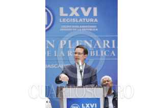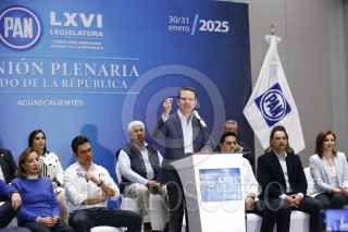 AGUASCALIENTES, AGUASCALIENTES, 30ENERO2025.- El senador Ricardo Anaya fue elegido como el coordinador de los parlamentarios blanquiazules durante su reunión plenaria. En la imagen el ex candidato presidencial saluda a Jorge Romero, dirigente nacional de su partido. FOTO: CUARTOSCURO.COM