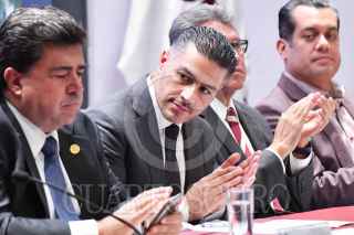 CIUDAD DE MÉXICO, 31ENERO2025.- Omar García Harfuch, secretario de Seguridad y Protección Ciudadana, durante la segunda reunión plenaria del grupo parlamentario de Morena previo al segundo periodo de sesiones ordinarias de la LXVI Legislatura, realizada en el Auditorio Aurora Jiménez de la Cámara de Diputados. FOTO: MARIO JASSO/CUARTOSCURO.COM