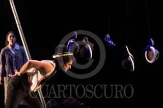 CIUDAD DE MÉXICO, 31ENERO2025.- Ensayo general de la puesta en escena "Luna Eva", propuesta de la compañia Cirko de Mente, presentandose en la Sala Miguel Covarrubias del Centro Cultural Universitario. Un espectáculo que narrado en 7 fases, con actos de suspensión capilar, equilibrio, acrodanza, malabarismo; integrando un espacio diseñado como una instalación y que cuenta con musica en vivo. FOTO: EDGAR NEGRETE LIRA/CUARTOSCURO.COM