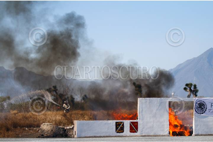 ESCOBEDO, NUEVO LEÓN, 31ENERO2025.- Soldados del ejército mexicano llevan a cabo incineración de droga dentro de las instalaciones de la VII Zona Militar, donde fueron destruidos 790 kilos de diferentes drogas ilícitas, como resultado de diversos operativos realizados por la Secretaría de la Defensa en en conjunto con la Fiscalía General de la República del Estado de Nuevo León. FOTO: GABRIELA PÉREZ MONTIEL / CUARTOSCURO.COM