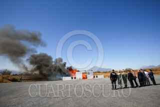 ESCOBEDO, NUEVO LEÓN, 31ENERO2025.- Soldados del ejército mexicano llevan a cabo incineración de droga dentro de las instalaciones de la VII Zona Militar, donde fueron destruidos 790 kilos de diferentes drogas ilícitas, como resultado de diversos operativos realizados por la Secretaría de la Defensa en en conjunto con la Fiscalía General de la República del Estado de Nuevo León. FOTO: GABRIELA PÉREZ MONTIEL / CUARTOSCURO.COM