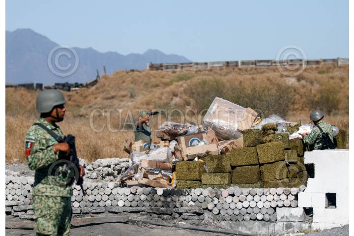ESCOBEDO, NUEVO LEÓN, 31ENERO2025.- Soldados del ejército mexicano llevan a cabo incineración de droga dentro de las instalaciones de la VII Zona Militar, donde fueron destruidos 790 kilos de diferentes drogas ilícitas, como resultado de diversos operativos realizados por la Secretaría de la Defensa en en conjunto con la Fiscalía General de la República del Estado de Nuevo León. FOTO: GABRIELA PÉREZ MONTIEL / CUARTOSCURO.COM