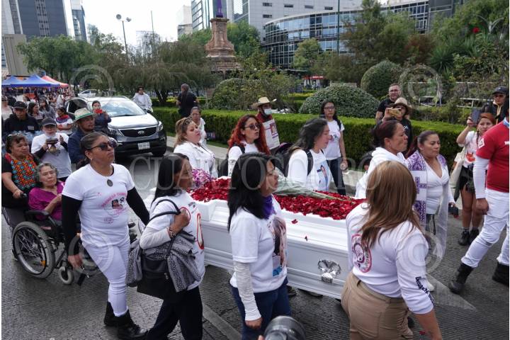 CIUDAD DE MÉXICO, 31ENERO2025.- Madres buscadoras de todo el país, así cómo personas solidarias de la sociedad civil se reunieron en la Glorieta de las Mujeres que Luchan para dar un homenaje a Jael Monserrat Uribe Palmeros, joven desaparecida en 2020 y cuyos restos fueron encontrados en el Ajusco en noviembre 2024. Entre gritos de Justicia y Sólo Nosotras los Encontramos, los restos de la joven fueron despedidos para ser traslados a un velatorio de la alcaldía Iztapalapa. FOTO: GALO CAÑAS/CUARTOSCURO.COM